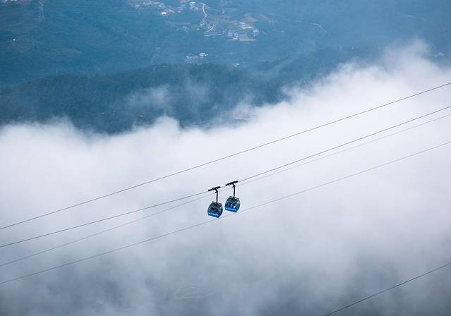 顺着小吃街上去便是去往后山的缆车,随着海拔上升,远山层叠出现在眼底,仿佛仙境般飘在这片山里。