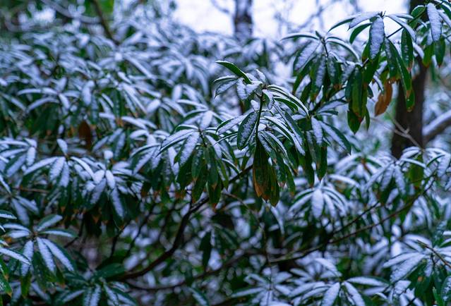 到达后山却有了惊喜的发现,昨夜下过的雪,还在山顶之上留下了痕迹,树叶之上还有着留下的雪,在这个秋末初冬也带给我无限的惊喜。