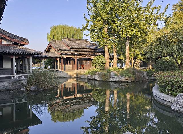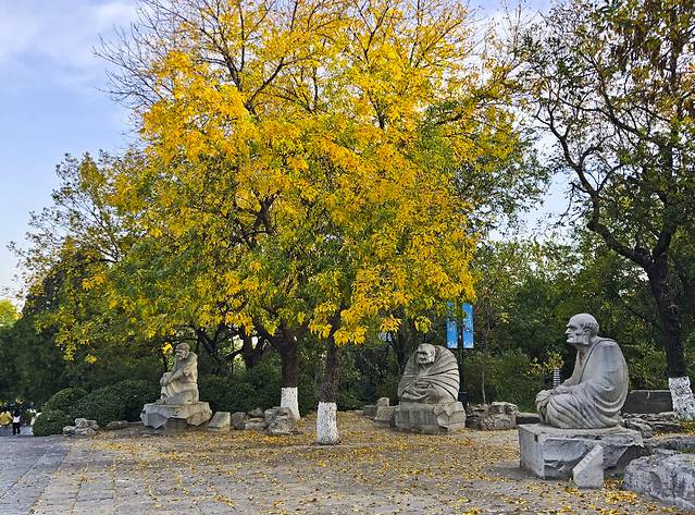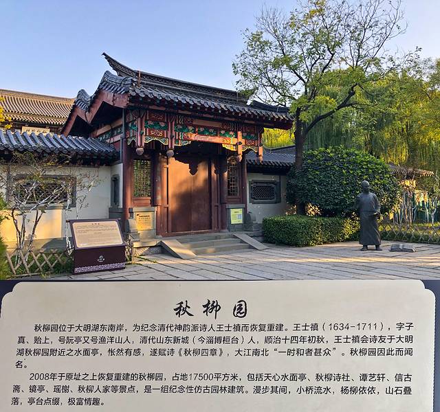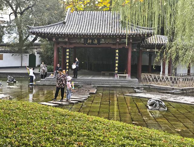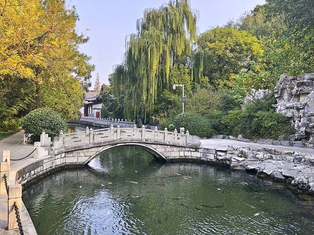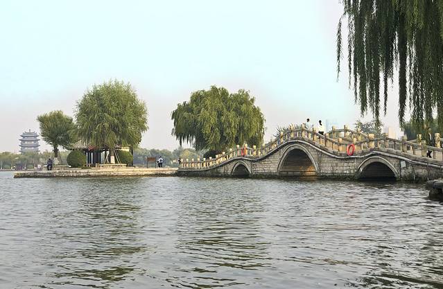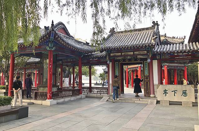 距离酒店较近,中午便骑小车回去休息了2小时,下午2:00多到大明湖西南那小片游览,走走看看,又买了船票准备去铁公祠转转,就是今天的计划,其它大明湖下次再游。先看见几个人文景观。