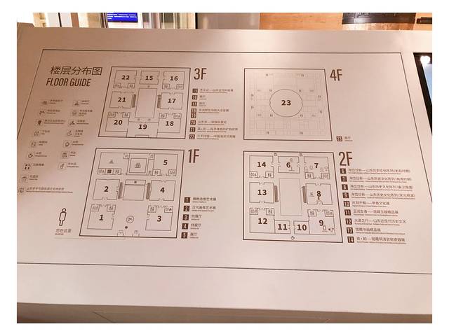 二层有海岱是新-《山东历史文化展》系列4个展室;还有《馆藏书画精品展》《馆藏玉器精品展》《馆藏瓷器精品展》《甲骨文化展》《山东近历史文化展》等。