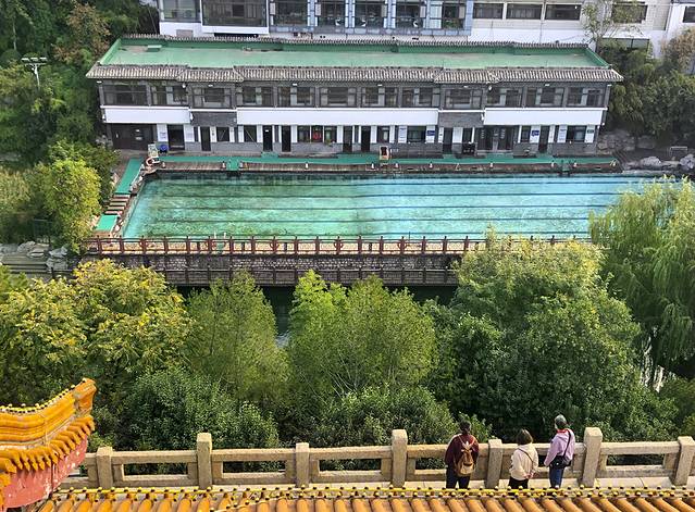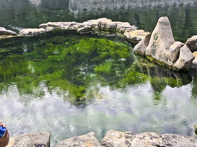 先去游附近的黑虎泉这一片环城绿地公园,从解放阁开始向西。解放阁太早没开门。第一个泉是白石泉,清清的泉水太美了,碧绿的水草在漂浮,泉底不断向上冒着水泡,十几米见方的泉,出水量很大,哗哗向外流淌。