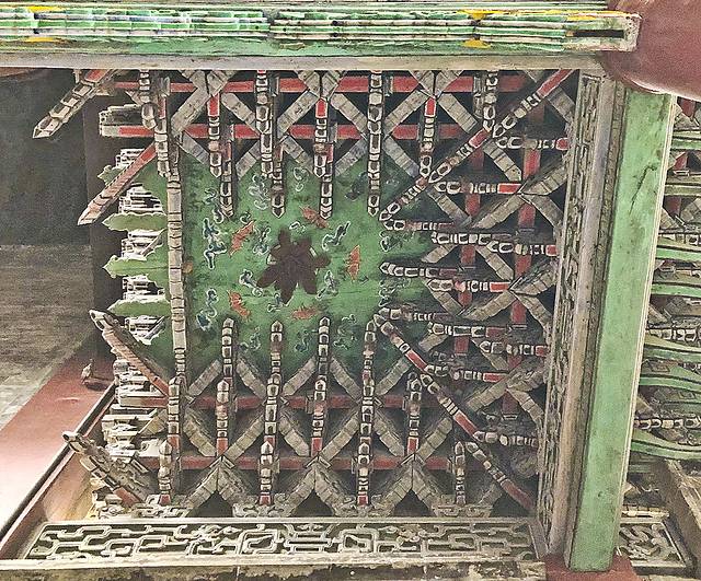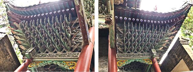 进来后看见了山门的背面,更是繁复无与伦比。下着雨,还有一群中学生站在这里避雨,几乎没插脚的地方,太影响欣赏了。