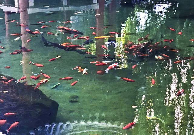 黑虎泉仍是一如既往的哗哗流淌着,清澈的水中小红鱼在美美地游动。