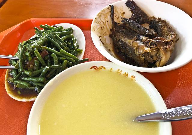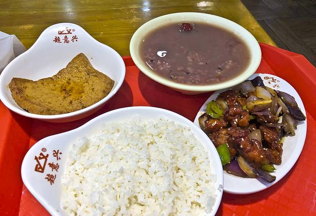向院外走时,隔墙看见了另一家“超意兴”快餐店,正好过去吃了早午餐。有饭有菜有粥真舒服。