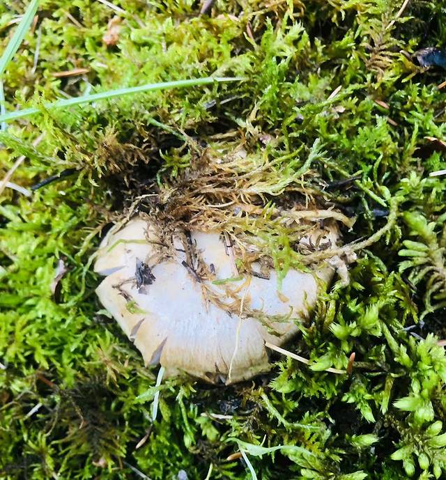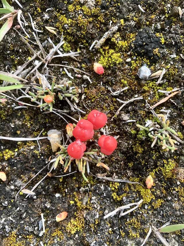 小牛仔仔不理我们,但是脚下的草甸却是很热情地朝我们点头。一粒粒红澄澄的,像野果子,又像是染了色的露珠。蹲下去仔细瞅,竟然是像果子一样的花,点缀在草地上异常可爱。草甸一直延伸到山坡下,没入了森林,变成了软软的青苔,在斑斓的阳光下,一幅很好rua的样子。蘑菇大概也觉得这里很舒服,整个嵌在青苔垫子里。可惜没有野餐垫,要不我也可以在这里躺一天,不,躺到天荒地老~
