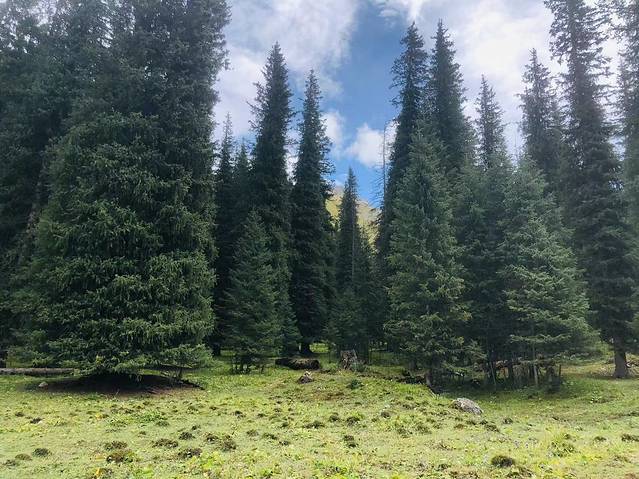 满眼的云杉、冷杉,高大,笔直,树与树的间距足够人在里面轻松穿梭。不像南方的林子难容人行。