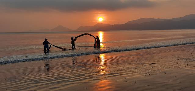 今天是行程的最后一天,早晨5点一刻,小车接上我们拍日出的人去北兜沙滩摄影点等候日出。