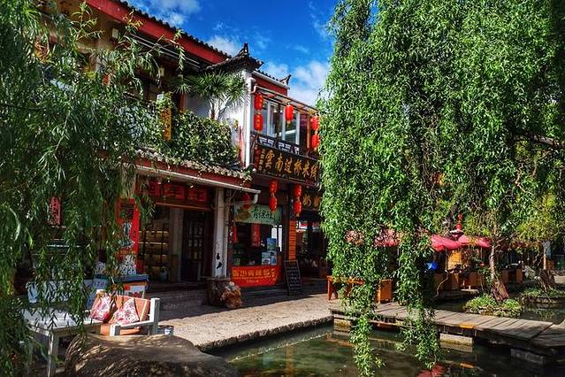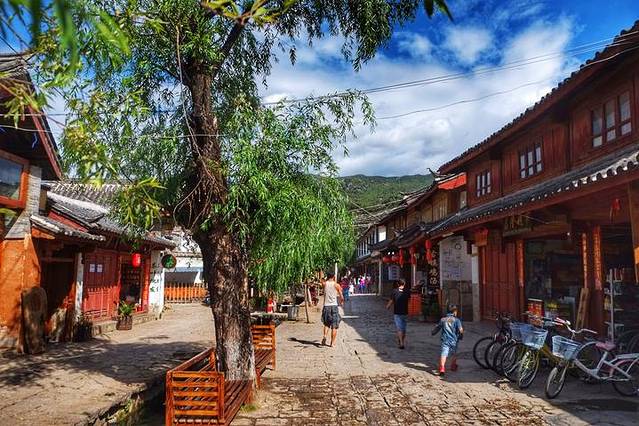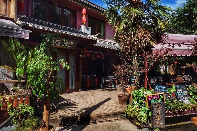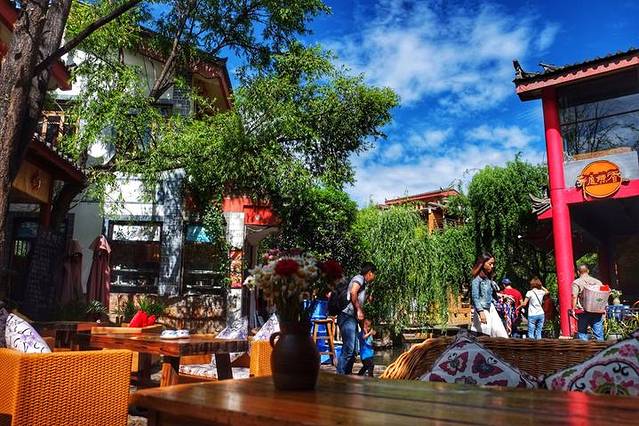 这里的游客也不少,但还是远远不及大研古镇的喧闹,你可以坐在街边洒满阳光的桌椅上发呆,细细体味这座充斥了爱与奇遇的风情古镇。