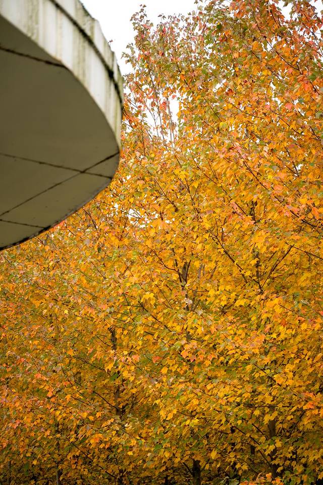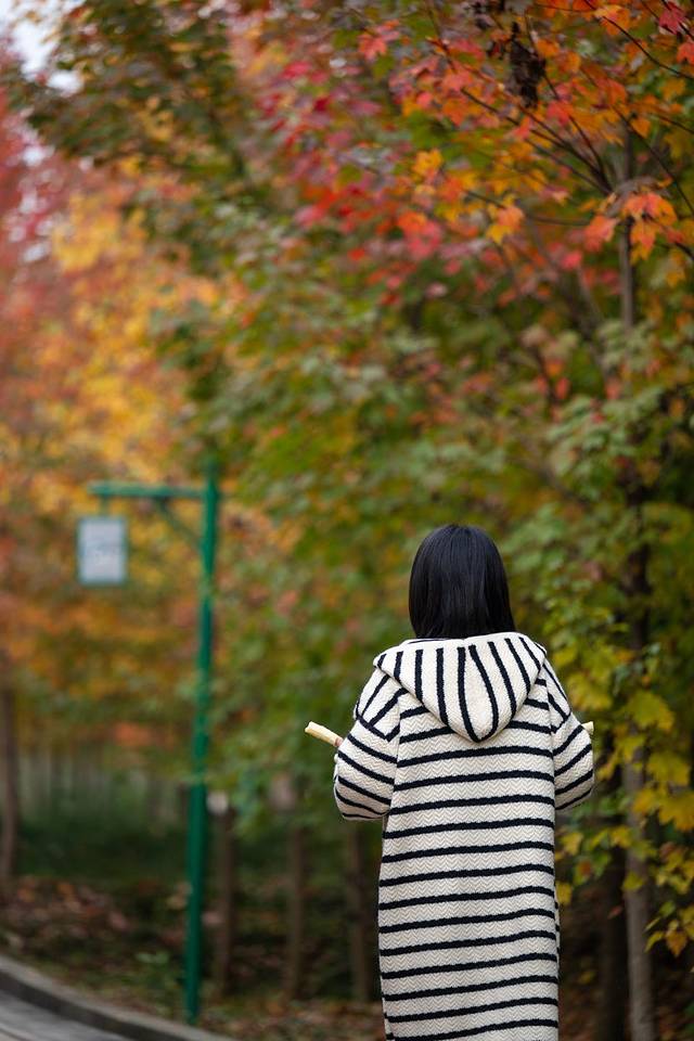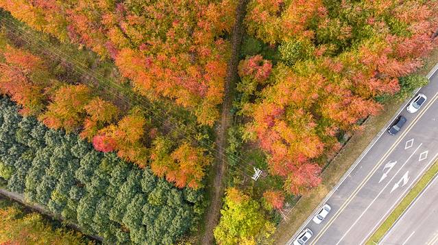 红的、绿的、橙的、黄的……层林被点燃出饱和不一的色彩,就像是被披上了一袭彩衣。