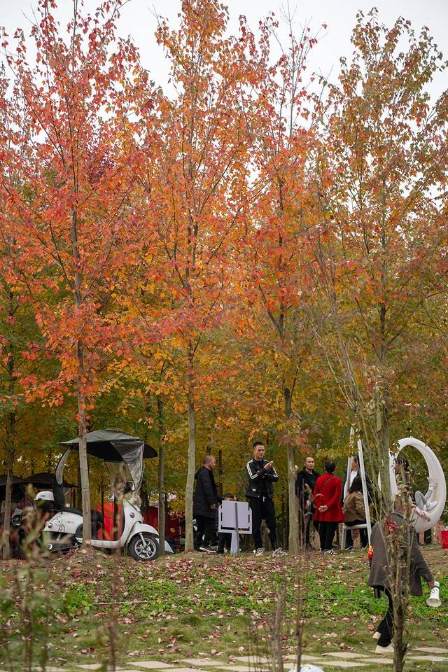 百亩北美红枫叶基地里全是成片的红枫,远远望去,那一抹绚烂的色彩实在迷人~