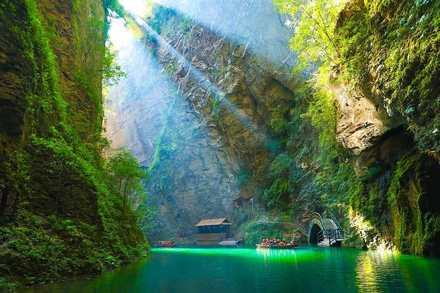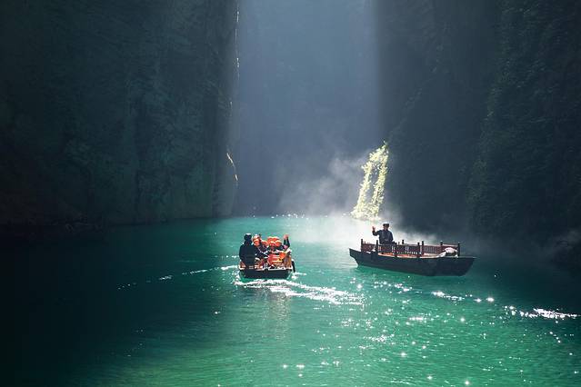 2、冬季入园时间为8:30-15:30,阴雨天气尽量14:00之前入园,以免乘船的时候峡谷光线变暗影响观景。如果正好是晴天,建议11点-12点入园,12:20-13:20乘坐观光船,这时可以看到绝美的丁达尔效应。