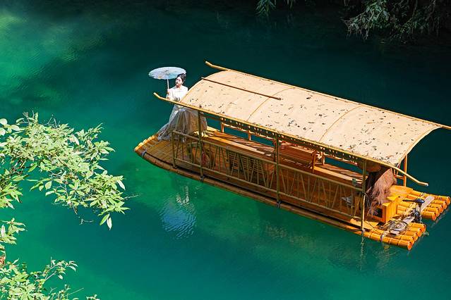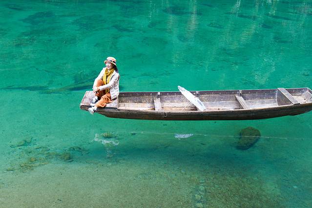 6、游玩过程中到达阿达亲水平台后,如果想拍网红小木船悬浮照,人多的时候务必先去排个号。如果有同行的朋友拍照,只需购买小木船船票20元/人,船上拍摄时间1-2分钟,没人排队的时候,可以拍个够。如果需要摄影师拍摄,30元/张照片,无需另付船票费用,照片选得多可以讲价。