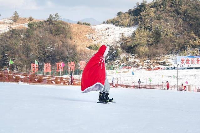 当时我们还在雪场碰到一小哥,身披一袭红色斗篷,滑着单板从我身边一闪而过,那叫一个潇洒帅气!