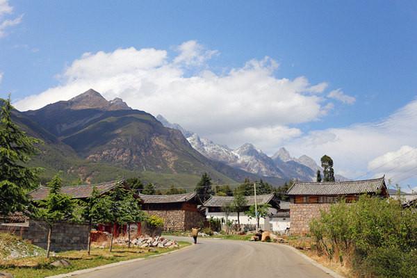 自然醒是件幸福的事情,推开门和一院子的阳光慵懒的相抱,像热恋的爱人的亲昵,阳光在耳边喃喃私语,炙热的,一切来的恰到好处。在古城外坐六路车前往束河古镇和白沙古镇,却误入玉龙村,去年四月的时候看见整个村子都是盛开的梨花,一簇簇的白色在村里的角角落落绽放,从摩天大楼的城市来到这里,身临世外桃源般的惊喜。今年再来,梨花已开败,村子依然是寂静的模样,还未褪色的春节对联依然火红的贴在大门上,几乎没有游客的小村子很是安静。走着,品着,放片刻安宁寄予于此。