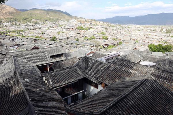大研古城是依托三山而建的古城,与大自然浑然一体,从远处眺望,整个古城仿佛在另一个时空,沿山而行,找一处高低俯瞰大研古镇,青瓦白房,鳞次栉比,与青山叠翠相依,紧紧环抱着古城。沏一杯清茶,听着吉他民谣,吹着微风在古城的让思绪陷入空白。