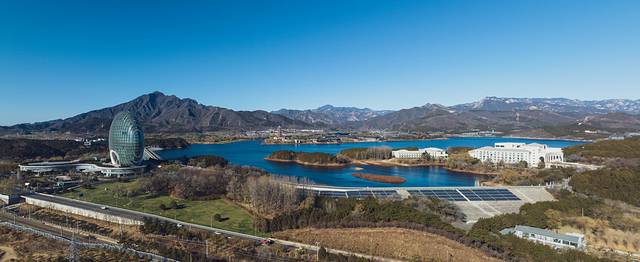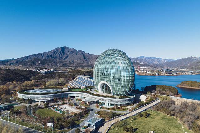 玩累了就在这里住一晚吧,别赶时问,就在这里慢享时光!酒店醒目的建筑,远远就能看到,正面的外形很像一轮旭日,侧面又像一个“扇贝”,与周边山水融为一体,给雁栖湖增添一抹色彩!