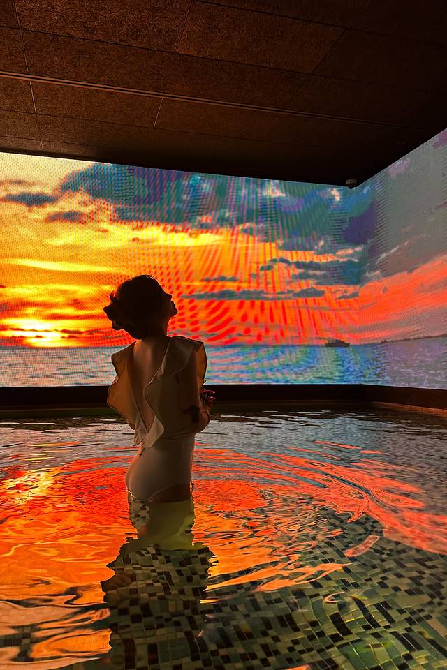 百乐达斯城可以玩的项目可太多啦,公共泳池就有好几个,但最吸引我的还是cimer汐美,游泳池超美超大,还有《花花首尔篇》里闪现的同款汗蒸馆,可以体验韩式地道的汗蒸,到达的第一天我们就赶紧去放松体验咯!因为上次过来的时候led幻境水疗在维护,这次弥补了遗憾,首先就去体验了一把,三面墙壁均由LED图像装饰而成,似真似幻,最爱的是夕阳🌇,太适合拍照和放松咯~