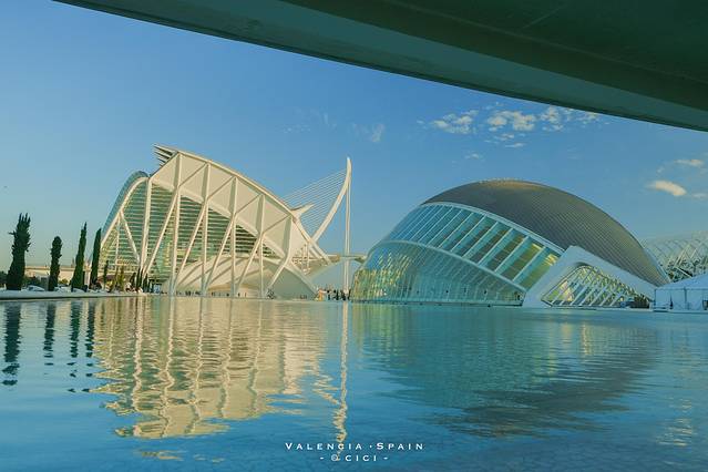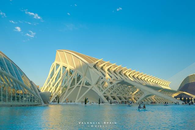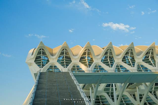 说到西班牙未来主义建筑风格的典范,瓦伦西亚的科学艺术城是绝对不能错过的地方。由瓦伦西亚本土建筑师设计Santiago Calatrava设计的建筑群经常被人戏称为外星建筑。