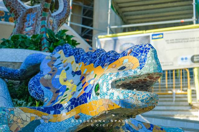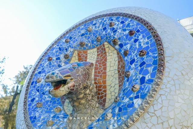古埃尔公园最吸引人的自然是那个可以眺望地中海的大平台,平台周围的一圈座椅都用彩色碎瓷砖拼贴,创造出迷人的色彩效果,平台下面布满立柱的大厅则如同森林,抬头还能望见各种星体。而全公园最受欢迎的合影对象则是公园入口处的那条吐水的“龙”(好多人都觉得是蜥蜴),如果没与它合过影甚至不好意思说来过古埃尔公园。