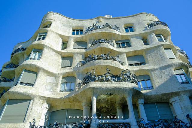 米拉之家是高迪设计的最后一个私人住宅,常被称为 La Pedrera(加泰罗尼亚语,意为“采石场”)。三面波浪型的墙面,扭曲回绕的铁条和铁板构成的阳台栏杆、宽大的窗户非常吸人眼球,1986 年,米拉之家被Caixa de Catalunya银行买下,耗巨资整修。现在的一楼是银行的基金会举办展览的场地。米拉之家的六层、顶楼和屋顶阳台对外开放,楼顶的烟囱十分特别,在阳台上还可以俯瞰部分市区街道,遥望圣家堂。