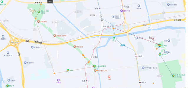 2、苏州在市区内游行可打车、地铁,各景点都挺近的。打网约车的时候要注意定位,很多都是单行道,定位不是很准,打车后最好和司机师傅电话沟通具体地点。