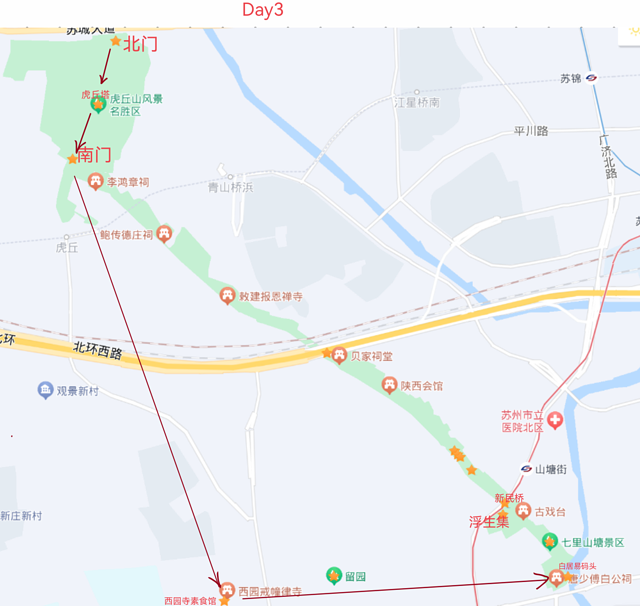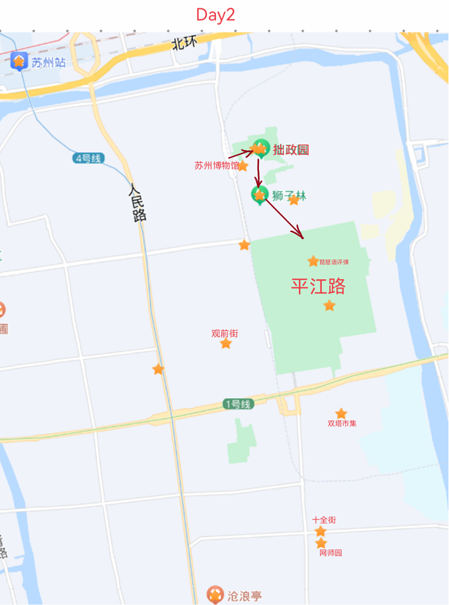 (以上三处挨着的,若时间仓促,拙政园、狮子林可二选一)
