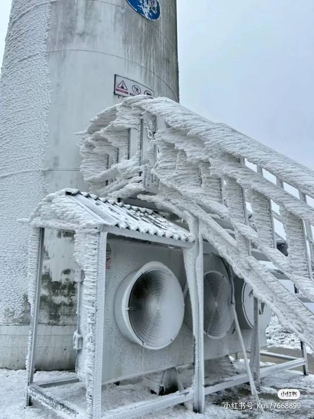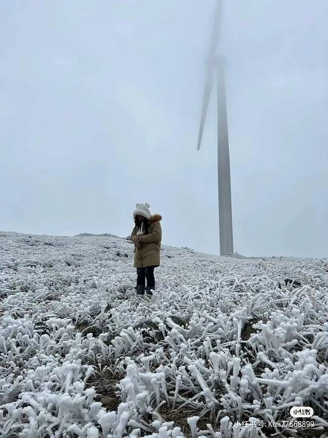 白雪给大风车穿上了雪白的外衣,甚是好看。