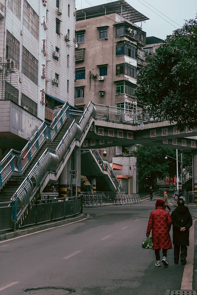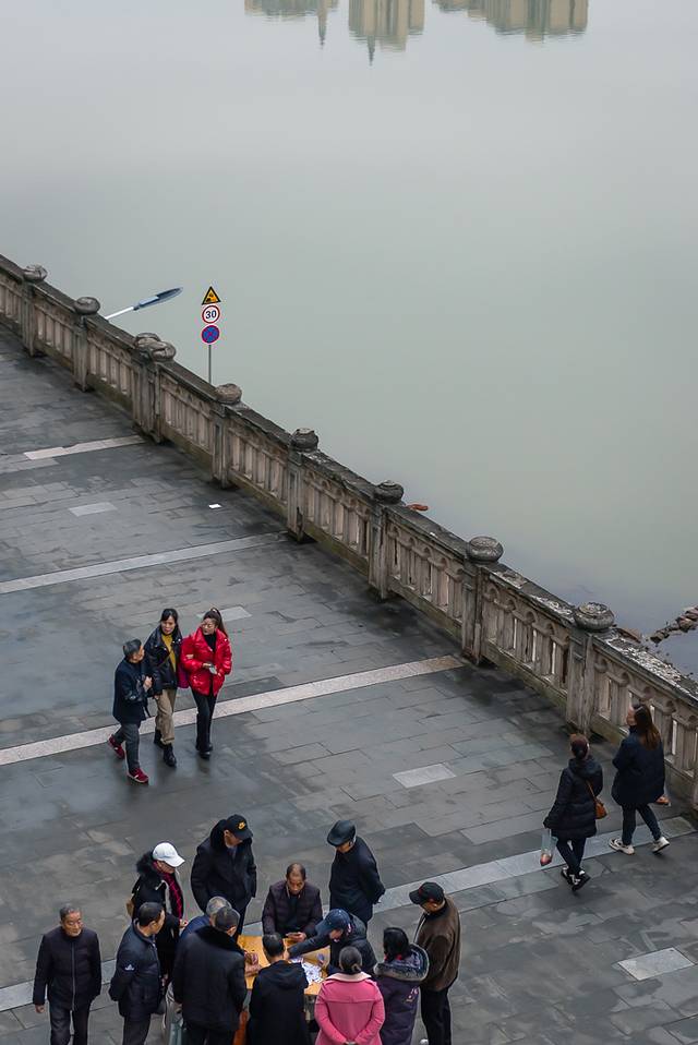 沿着明月大桥走到老城时远远便能被依山而建的建筑所震撼, 从江 边往山上,马路错落有致,车行道、人行道、散步道、上山道,出现在同一平面画面中,脑子里的第一反应,这不就是“山城”吗?这些房屋保持着老城的市井生活,节奏慢,但让人想藏身其中。