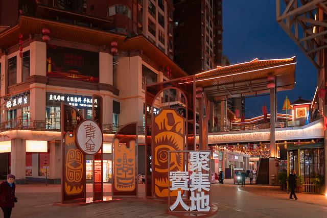 賨人里人群熙熙攘攘,各式各样的商铺的餐馆让眼花缭乱。复古元素与现代元素做了一个巧妙的融合。古色古香的建筑与现代风格的店铺和谐共存,展现出了一种独特的视觉冲击力。