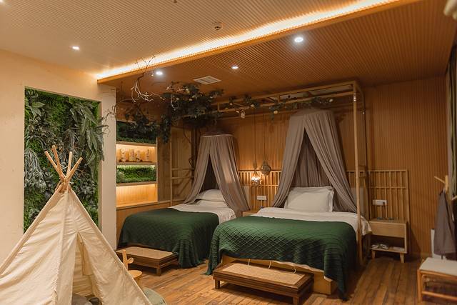 这里虽然有餐饮、娱乐项目,但每一个区都是合理分开的,特别是民宿区,只要走入院内,就能在绿意盎然的庭院中,感受到城市中少有的宁静。