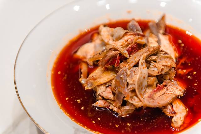 直到服务员递上菜单的这一刻我才知道这是类似于凉拌鸡的菜!这道水八块拥有上百年历史,制作也非常讲究,就是要将整鸡按部位斩成八块,再将八块分别切片,淋上密制的红油,