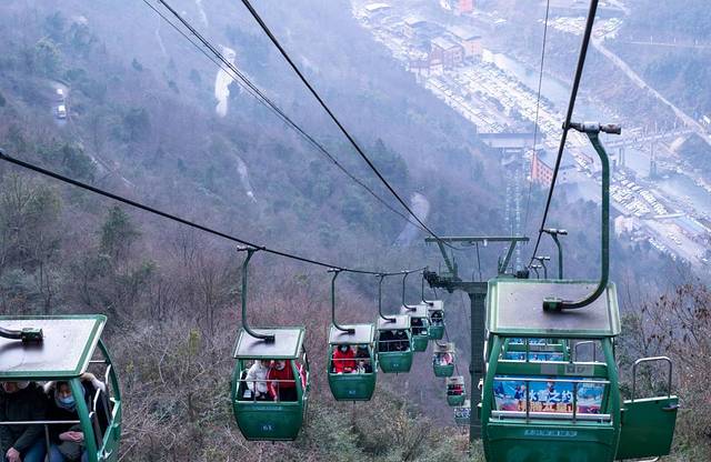 从成都出发,自驾大概3小时就能到达我们此行的目的地九皇山景区,办理好票务之后便可以直接乘坐缆车上山,一瞬间便将人从城市的繁杂中拉进这个世外桃源里,享受山野带来的自由感,缆车缓缓上行,随后便是到达半山腰的位置,一个大大的广场出现在眼前。