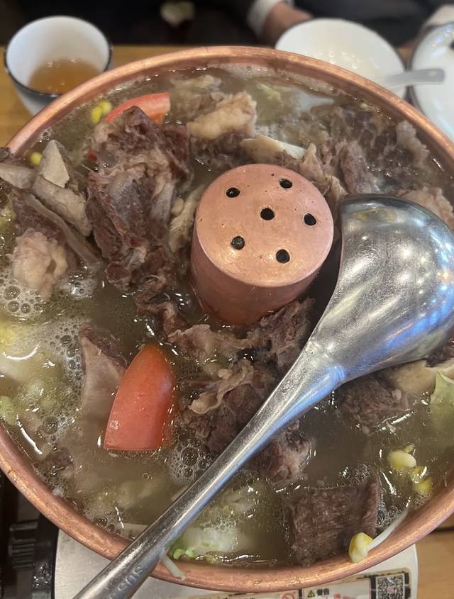 牦牛肉小火锅汤底很鲜!肉也很大块,吃的很爽,本来以为会有牦牛的牛骚味,结果完全没有,但是还是要趁热吃,冷了就口感不在了!