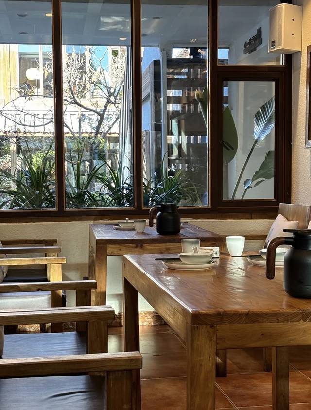 很舒服,外面是两人桌,可以听驻唱,里面是四人桌,庭院有五人桌,二楼也有桌子,安排的很合理,坐着也很舒服!