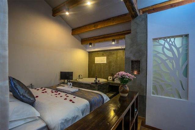 两个三房一照壁的纳西院子组合在一起,也是有很多种房型和多种类装修风格的,房间整体上是比藏溪精舍要大一些的。