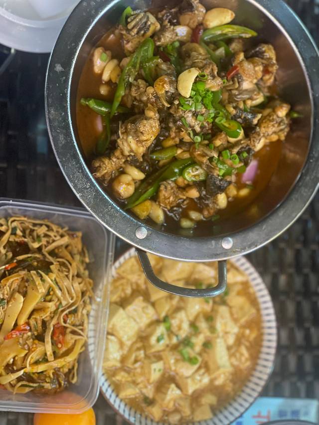 他们家的饭菜真的很好吃,而且对比旁边的几家饭馆价格也比较让人容易接受,而且老板人挺好。这里楼主点了两个菜。泉水豆腐(8元) 庐山石锅石鸡(129元,鸡是田鸡,味道很好,里面还能下小白菜建议下五元一份,白菜很甜)