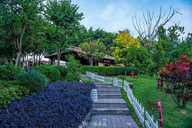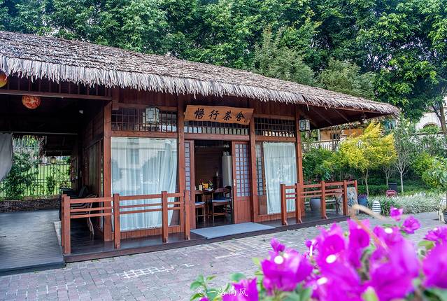 蜿蜒的小径向山上伸展,悟行茶舍就隐藏在繁花绿树之间。