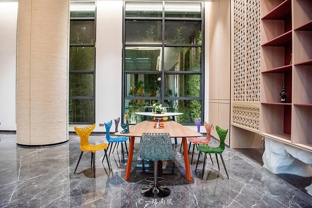 酒店构建了120个便捷舒适的空间,大至整体风格的营造,小至凳子的颜色、壁画的内容都很讲究。