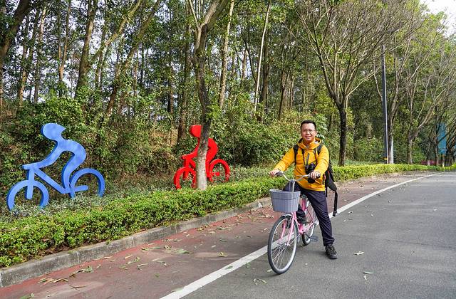 休闲的午后,骑着单车环湖游览,视野里绿水青山,景色美不胜收。