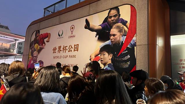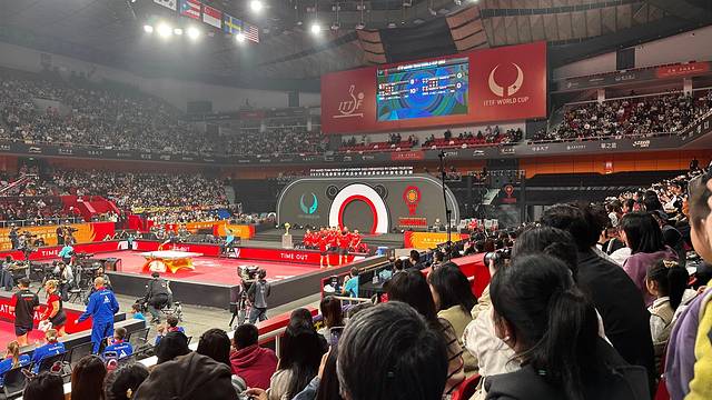 因为就是为了乒乓球世界杯来的,结果有没有买到中国队的票,所以我们又加买了晚上的票,当然像我这种门外汉+爸爸,是配不上中国队的VIP票的,所以晚上我就在酒店好一个泡澡,现场人山人海的照片,是孩他娘+好大儿拍的。