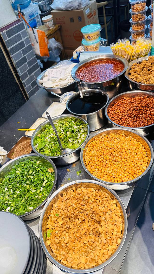 李与白包子铺旁边豆腐脑摊子,调料真是多啊
