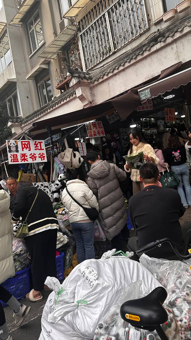 当然我们不是奔着这个来的,我们是来找网红熊猫爷爷的,来找他买熊猫玩偶。