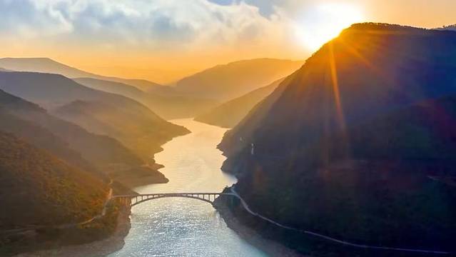 傍晚,天边的夕阳染红了整个天空。站在山巅,我俯瞰着群山起伏,夕阳的余晖洒在青山绿水之间,宛如一幅神秘而宁静的山水画。这一刻,仿佛时间停滞,只留下这一片宁静和美丽。