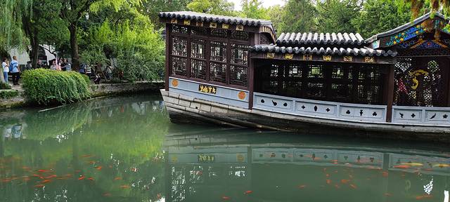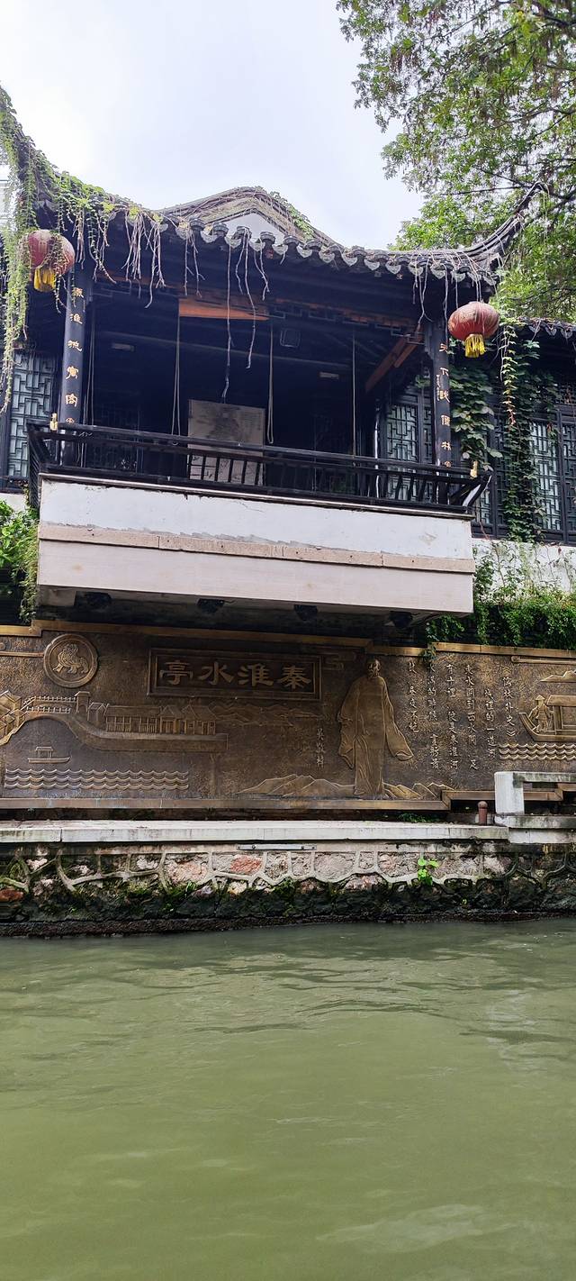 坐船游览秦淮河, 大约有3公里, 一路上有多种景致, 如戏园、遗址, 挺舒服,景色也很美,比起吵吵闹闹的夜晚, 白天的秦淮河更安静柔美。