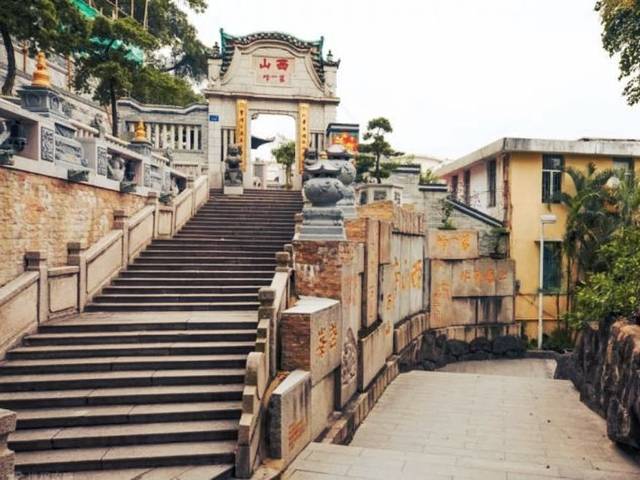 西山寺,位于中山市中区西山,始建于明代,初为明代乡贤毛可珍读书之所,后改为寺院,经清代顺治、康熙和乾隆、嘉庆、咸丰年间和民国10年(1921年)、1988年多次增建重修,1990年被中山市人民政府公布为市级文物保护单位。西山寺坐北向南,深三进,硬山式顶,抬梁式木架构。前进两边有厢房,天井两旁两廊均为卷棚顶,后进两边有偏殿,三进是水泥红砖结构的二层楼房,底层为僧舍,上层藏经。