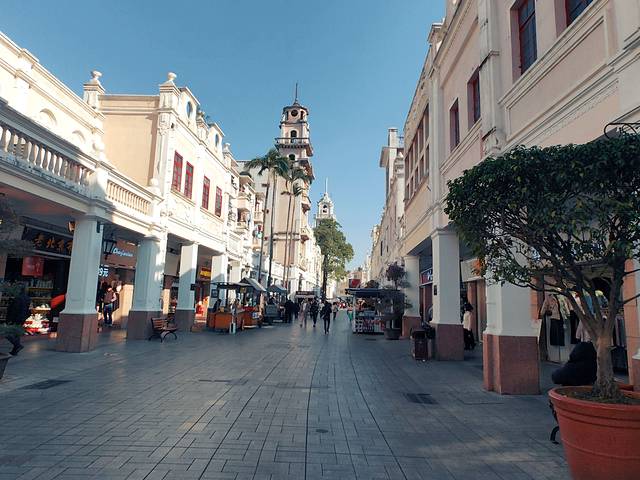 闻名遐迩的上下九商业街位于老城区西关,东起上下九路,西至第十甫西,横贯宝华路、文昌路,全长1237多米,全路段店铺林立、共有商店300多家,日客流量达60万次。荟萃了岭南文化中的老西关美食文化、岭南饮食文化和岭南民俗风情。上下九步行街的标志性建筑是连绵千米的骑楼街。
