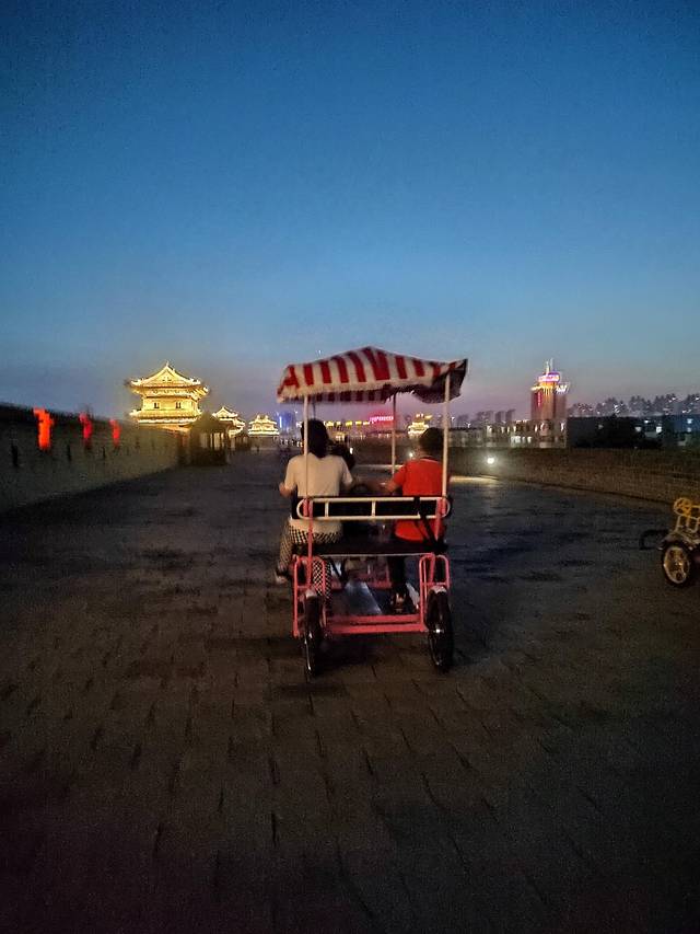 晚上游览大同古城墙(骑四人自行车游览一圈3小时,孩子非常喜欢推荐)