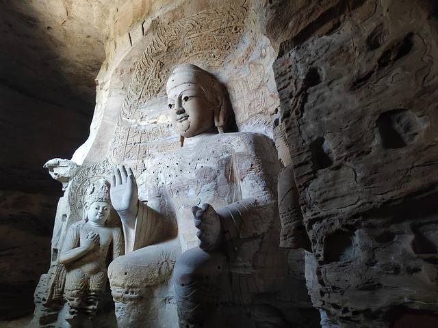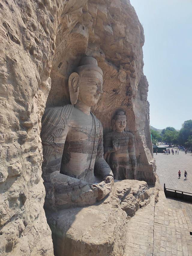 云冈石窟:(微信公众号预约买票,孩子免费)跨越千年的微笑,值得参观,大佛左上角的台阶处照相最合适,能照到佛得全身