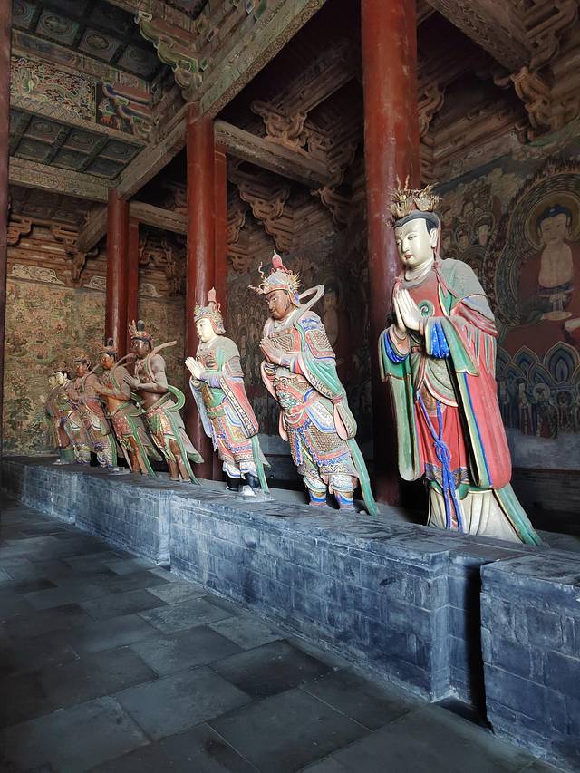 华严寺:大同华严寺精美的佛教壁画,华严宝塔是继应县木塔之后全国第二大纯木榫卯结构的方形木塔。下华严寺,也是辽代始建。重点是这里面的雕像,那个传说中的合掌露齿菩萨就在这里。