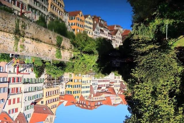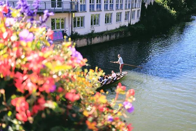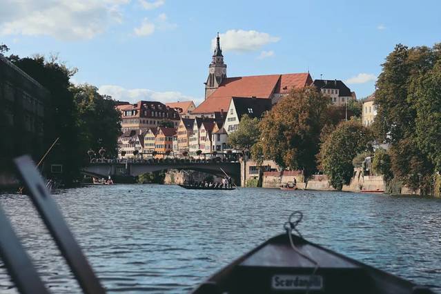 乘坐著名的“Stocherkahn”游船也是在这里必做的旅行项目,这是图宾根独有的游船,由一根长木杆操纵,沿途可以欣赏风景如画的内卡河两岸美景,有彩色房子的一边被称为是图宾根的“甜蜜的一面”,任何和图宾根相关的一定都有一边河岸的存在。
